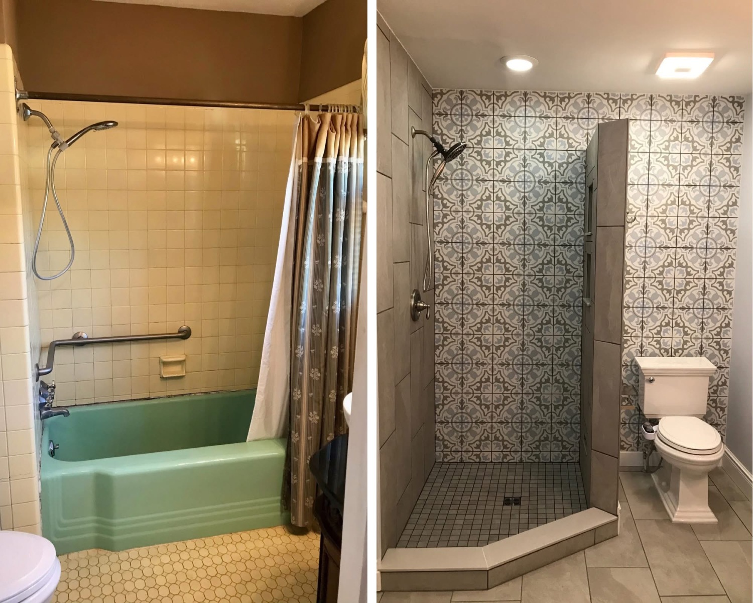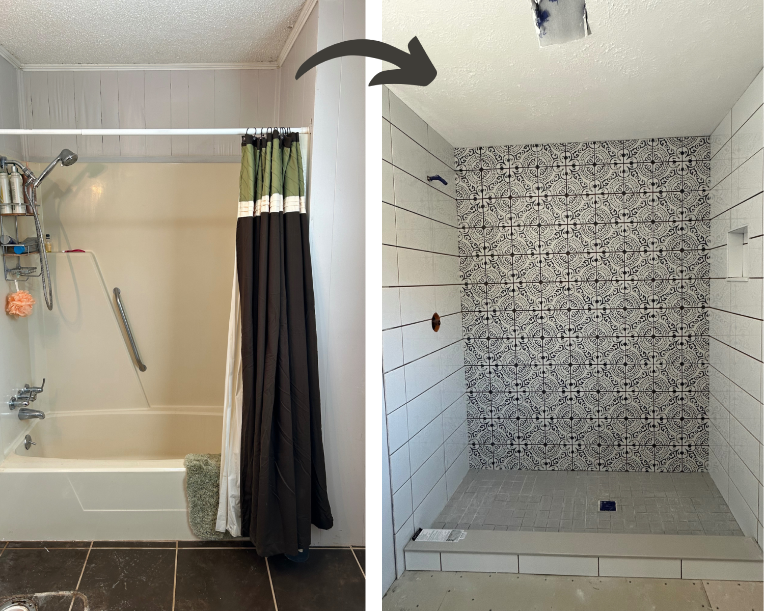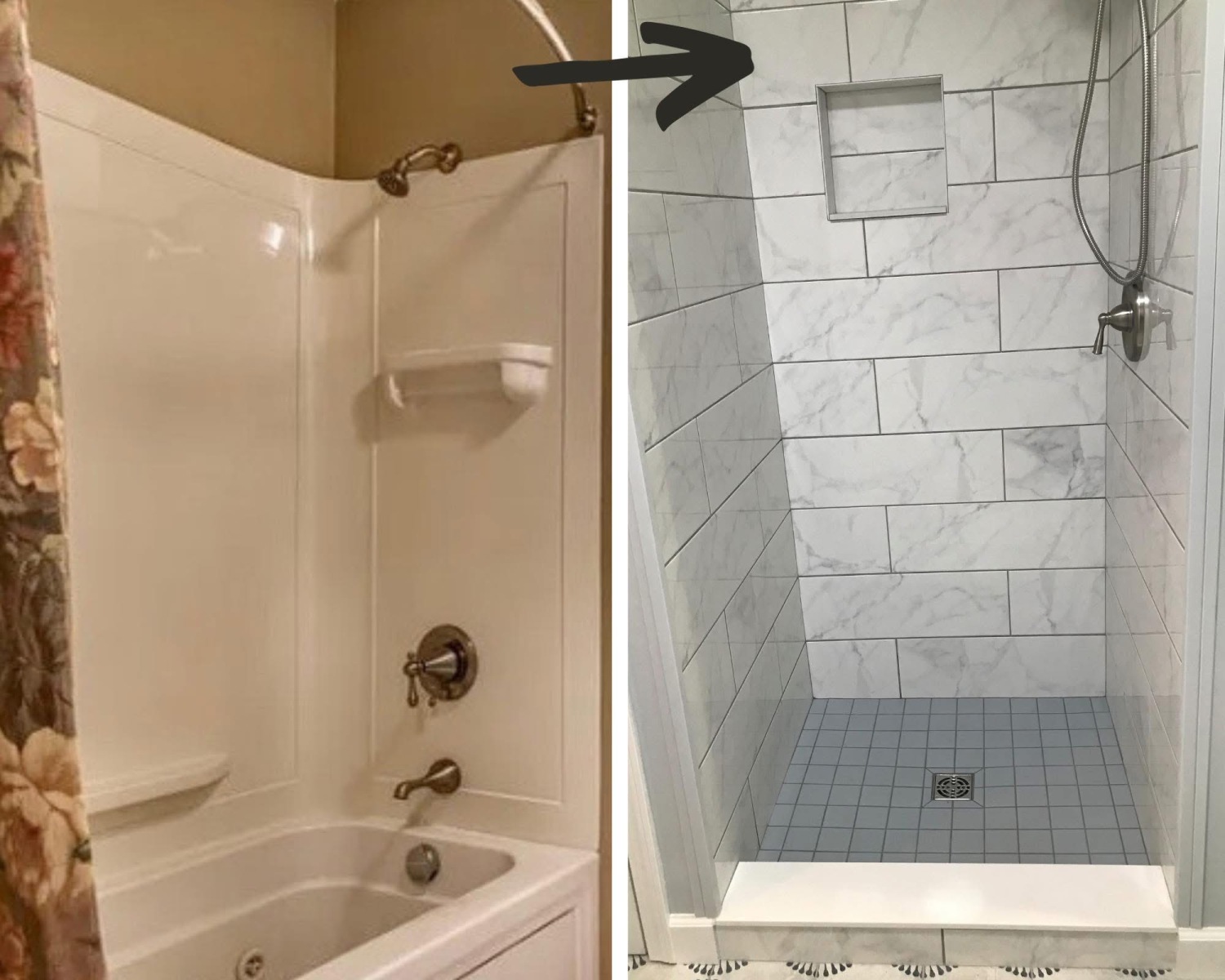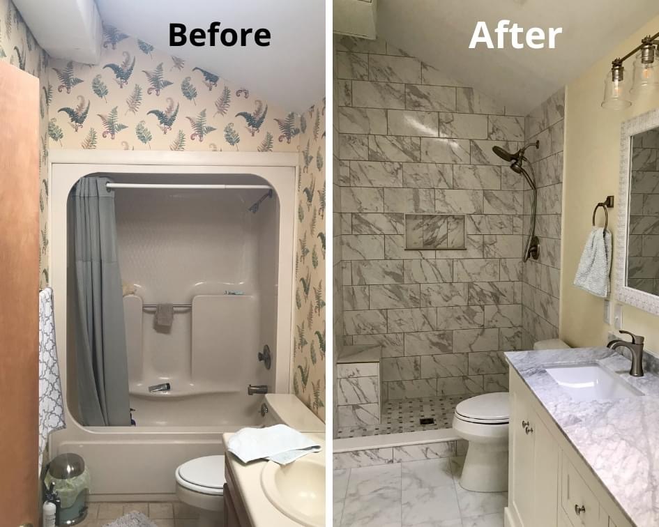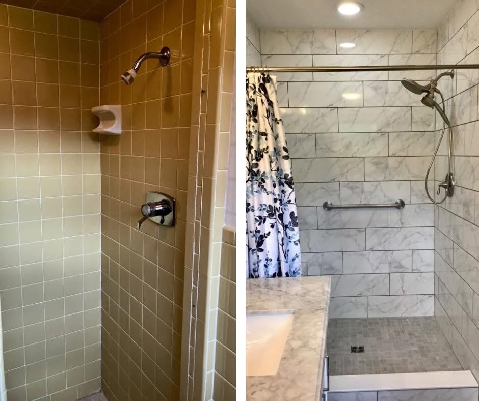 Before Old Tub Surround Replacement After Custom Tile Shower Installed